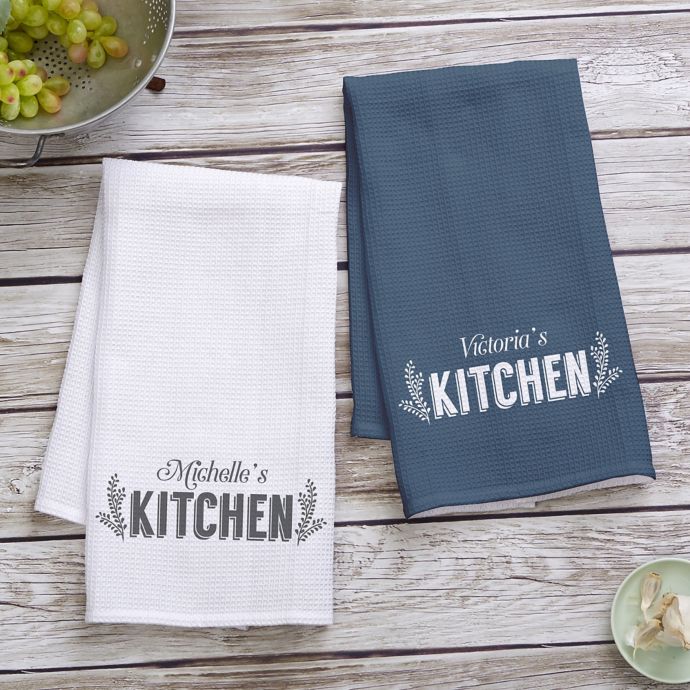 Personalized Kitchen Towels Linen / Laurel Monogram Personalized Waffle Weave Kitchen Towel ... / Use bright colorful images throughout the summer, pinks and blues throughout spring, reds and browns throughout autumn, and create personalized christmas dish cloths for the wintertime.. Check out our linen towels selection for the very best in unique or custom, handmade pieces from our home & living shops. Choose from our linen tea towels, hand towels, aprons, oven gloves. Shop for quality kitchen linens produced in europe. Here you'll find personalized serving dishes, wine glasses, table. Kitchen linens get a special kind of dirty, because most people don't just use them for drying dishes — they also use them to wipe up crumbs off the.